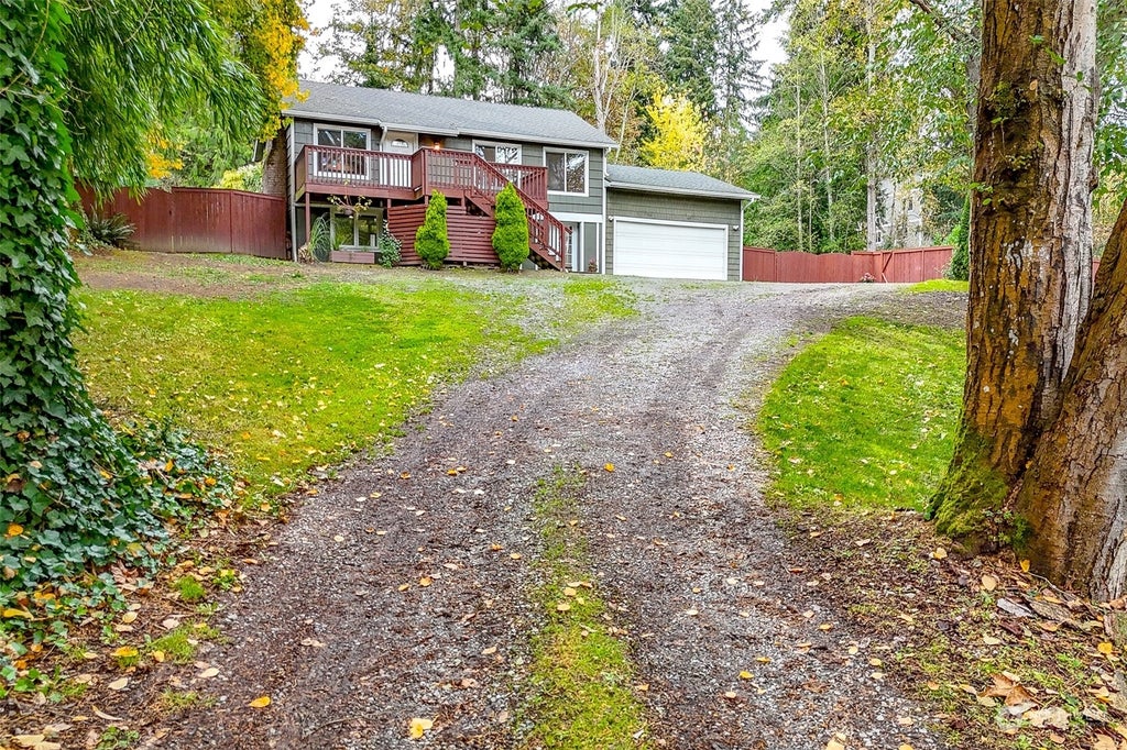 Welcome to your dream home! This spacious 3-bedroom, 2-bath residence sits on an oversized 1.5-acre lot, perfect for outdoor enthusiasts. The inviting wood stove adds warmth to the oversized kitchen, which features an island and includes all appliances. French doors lead to a massive deck, ideal for entertaining, with additional deck off the front of the home. Enjoy ample space for RVs, boats, or even a detached shop. This two-story home boasts a cleared, terraced yard filled with an abundance of natural light. Conveniently located between I-5, HWY 167, and HWY 18, this property offers both tranquility and accessibility. Make this beautiful space your new home!