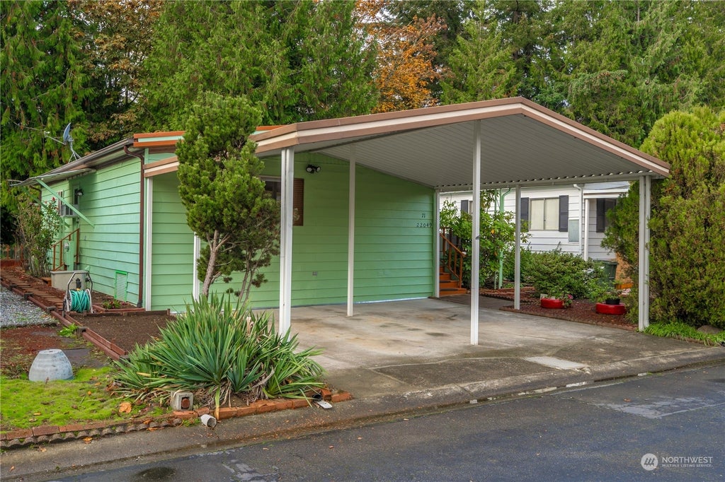 Welcome to this meticulously maintained home in the heart of Canyon View Estates 55+ community, where vibrant living meets serenity. Step onto the spacious covered porch inviting you inside to the airy living room. Enjoy the large kitchen with backsplash, a new range/hood, & wall of extra cabinets extending into the dining room. Home is 1,200sqft with 2 bedrooms & 1 bathroom. Roof, flooring, furnace, bathroom vanity & exterior paint were updated in 2024. The property features covered parking for two cars, covered deck, garden space & patio area perfect for grilling in the summers. Backyard backs into a creek offering privacy & lush greenery. Enjoy the community clubhouse with a pool. Located close to freeways, parks & amenities! Must see!
