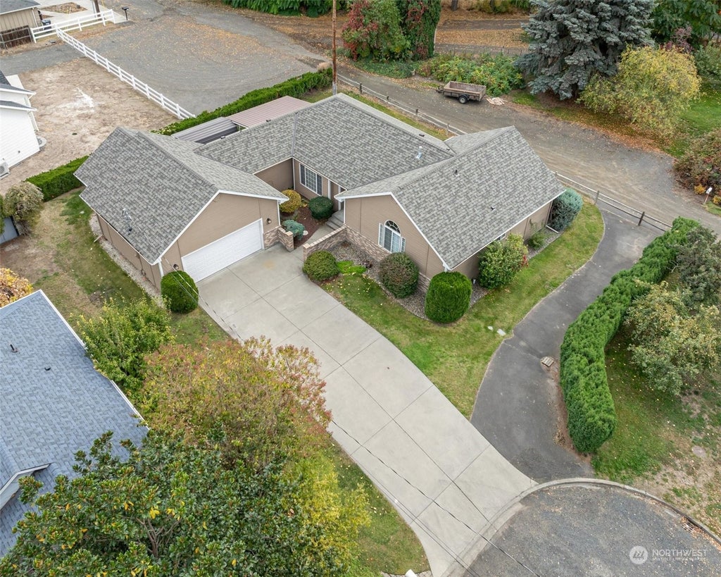 Light & bright single-level home in College Place, boasting stunning soaring ceilings & versatile living spaces. The charming kitchen offers ample counter & cabinet space, & flows into the sunny family room, boasting a bay window. Formal living & dining areas w/ cozy gas fireplace, 3 spacious bedrooms, including the primary suite w/ walk-in closet & 4-piece bath w/ updated tile shower. Large walk-in pantry, laundry w/ storage & utility sink, updated AC unit & gas furnace, new roof w/ transferable warranty! 2-car garage w/ built-in cabinetry & attached workshop. Private low-maintenance backyard complete w/ an oversized covered patio, storage shed, & mature landscaping. Located near Walla Walla University, dining, shops & parks. Welcome home!