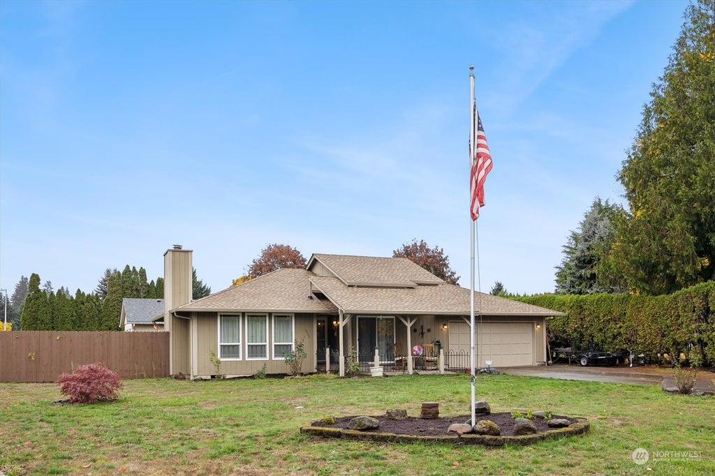 Welcome to this charming one-level home situated on over 8,000 sq ft. Enjoy peace of mind w/a new roof & gutters (2024) & heat pump/air conditioning system (2019). Step inside to stylish laminate & vinyl flooring. The kitchen features granite countertops, tile backsplash, & a cozy breakfast nook—all SS appliances included! Spacious dining & living area boasts a warm wood-burning stove, perfect for gatherings. Enjoy outdoor living on the covered front patio or in the fenced backyard w/a deck & garden tool shed. Additional updates include a new backyard fence (2024) & side yard fence (2022), ensuring privacy. And with a 50 AMP plug in the 2-car garage & room for small RV, boat, or trailer parking, this home blends comfort & accessibility!