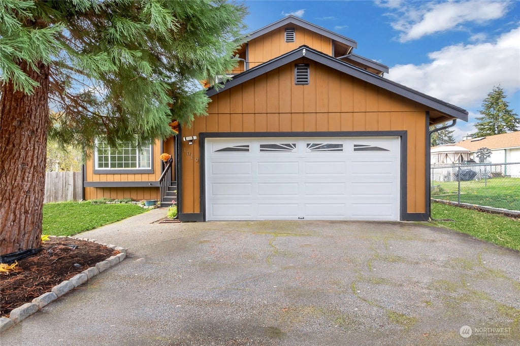 Welcoming home on a large fenced lot in a quiet cul-de-sac. Inviting entry with sky light and vaulted ceilings throughout living & dining areas. Lots of windows let in all the natural light. Kitchen with granite counters and stainless steel appliances. Primary bedroom with double closets, private bath and granite counters. Large family room with french doors lead out to deck and huge fully-fenced backyard, perfect for entertaining and pets. Plenty of room for gardening and playing. Newer roof. 2-car attached garage with extra-long driveway with generous parking. Close to sports complex, shopping & I-5. Easy drive to JBLM. VA Assumable at 3.75%.