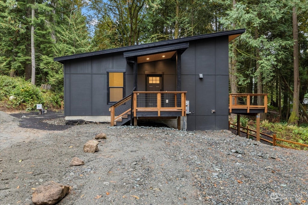 Stunning New Pacific Northwest Modern Home! This beautifully designed 1,024 sqft residence features 2 spacious bedrooms and 1.75 baths. Enjoy high-end finishes with elegant quartz countertops and abundant natural light throughout. Nestled among mature trees, this home offers a tranquil retreat. The community boasts fantastic amenities, including a refreshing pool, serene lake access, a convenient boat launch, a playground, and a welcoming clubhouse for gatherings. Perfect for those seeking a blend of modern living and outdoor adventure! Don’t miss your chance to own this gem!