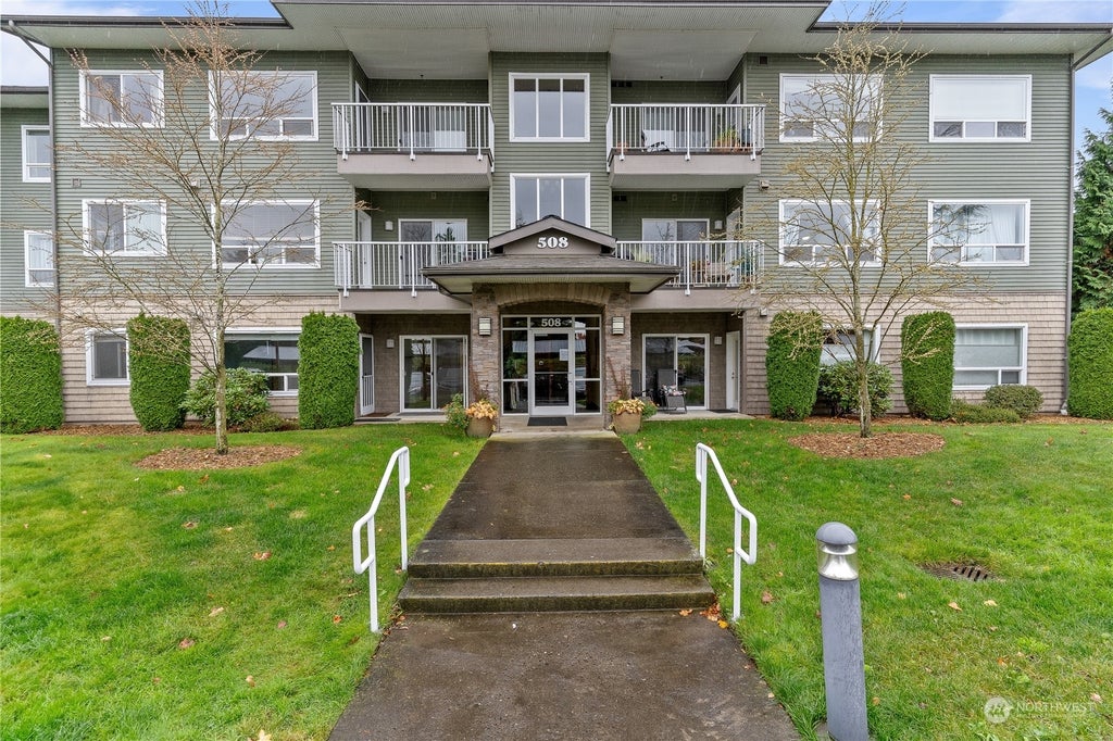 Discover modern living at Darby Estates Condominiums in the coveted Cordata neighborhood! This spacious, ground-level unit offers 2 large bedrooms, each with ensuite bathrooms, new contemporary lighting, and walk-in closets. The open floor plan boasts 9' ceilings with fans, LPV and tile flooring, and abundant natural light. The kitchen impresses with stainless steel appliances, generous counter space, and ample cabinetry, plus a separate laundry room with a washer/dryer. Endless storage and pantry. Enjoy nearby community trails, Bellis Fair Mall, and Whatcom CC—all within walking distance. A short drive to WWU and Bellingham Airport adds unmatched convenience! Includes some virtually staged photos.