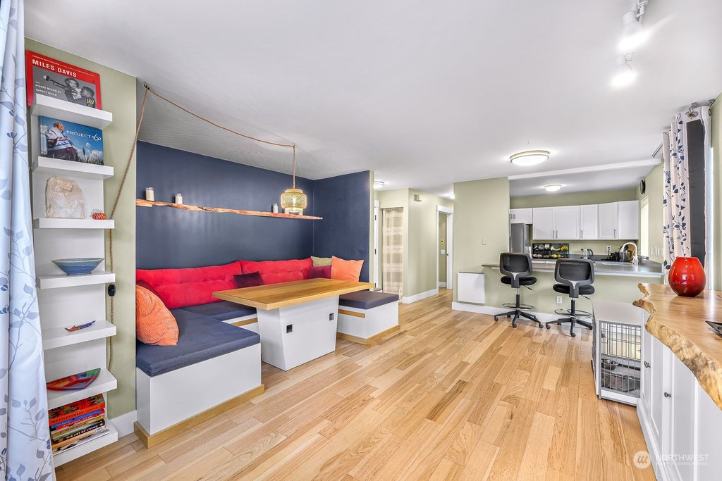 Welcome to a modern and convenient ground-level condo located in the heart of Bellingham. This spacious 2-bed, 2-bath unit offers a bright, open floor plan with nearly 1,000 sq ft of living area. Totally renovated space with Hickory Engineered Hardwoods, Quartz countertops in the kitchen and both bathrooms, all new appliances, large tiled showers, and in-unit laundry. Built in sofa/dining/daybed and living room storage make this unit move in ready. Community amenities such as a fitness center and clubhouse, ideal for parties and gatherings. Minutes from downtown, Costco, major shopping, and I-5 for easy commuting. The perfect combination of location, quality, and affordability all wrapped into one little gem. Come see it before it's gone!