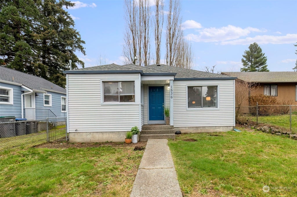 Cute Bremerton Home with partially fenced front yard for playing or growing the garden your heart desires. Coved ceilings & fan in the sweet, freshly painted living room. Eat-in kitchen has room for a bistro table & chairs, all appliances convey, including the washer & dryer off the kitchen in the utility room. Bedroom used as primary to the right as you face the hallway, second bedroom to the left. Re-roofed in 2015, water heater from 2016 & gas furnace approximately twelve years old was recently serviced. Carpet just cleaned prior to listing, may be hiding hard wood floors. Shared driveway leads to detached garage with shop space used as storage behind the home. Within minutes to Seattle Fast Ferry, Naval Base, schools & dining!