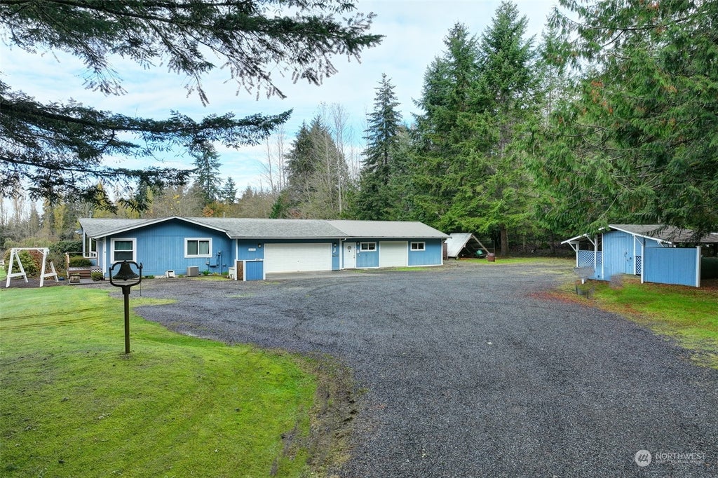 Quiet & Surreal, this Lovingly maintained 5 acre estate is paradise! Pastures, Orchards w/Pear & Apple trees & private paths wind thru the acres. Lg Shop attached to main house is ready for all projects & heated by a woodstove! Private Primary suite overlooks pastures w/large soaking tub, dble vanity, shower, linen closet.2 add'l bdrms off the other side of the home share a lg full main bath. Spacious Kitchen w/Corian counters & updated appliances, loads of countertop work space & storage. Attached 2 car garage w/entry onto the private patio perfect for entertaining. Grounds are loaded w/award winning gardens including many perennials w/peonies & dahlias. Woodstove for alternative heat source and is also equipped w/a Whole house generator.