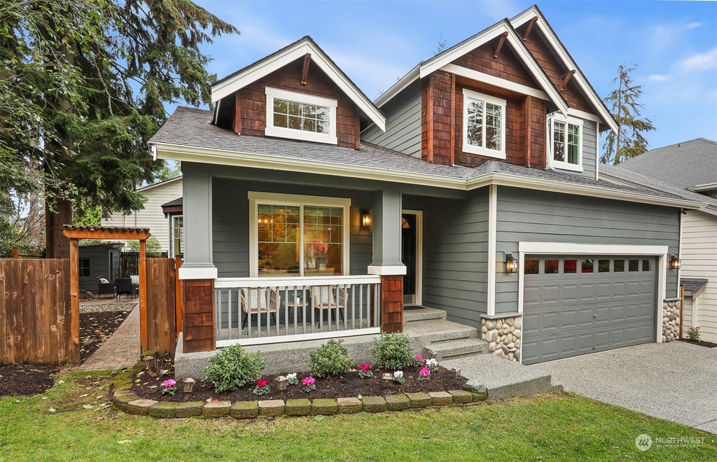 Nestled in a serene setting, lies this stunning home w/ an ideal floor plan. As you enter, you are greeted w/ vaulted ceilings & abundant light. The updated kitchen is a chef's dream w/ a pantry, quartz counters & all newer SS appliances. Open to the family room, this warm & inviting space is great for entertaining or a cozy movie night. Powder room & laundry finish off the first floor. Upstairs you’ll find the coveted 4 bedrooms all generously sized. The primary suite features high ceilings, walk in closet, & 5 pc bath. Second upstairs bathroom features new quartz counters & updated lighting. Outside enjoy a fully fenced yard w/ private patio space & playhouse/shed. With A/C, 2 car garage & convenient location near Mill Creek Town Center!