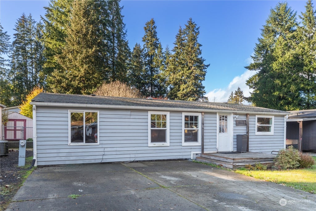 All-age park! Steele Creek has a clubhouse with exercise room and park with play area. Come fix up your new home, yes it needs some TLC. Open floor plan with vaulted ceilings, primary bedroom with walk-in closet and bath on one end and the other 2 bedrooms and bath on the other. Large backyard with shed, spacious deck and enclosed porch. Just 3 doors down from the community play area. Side by side parking. Convenient location close to bases and in Central Kitsap School District.