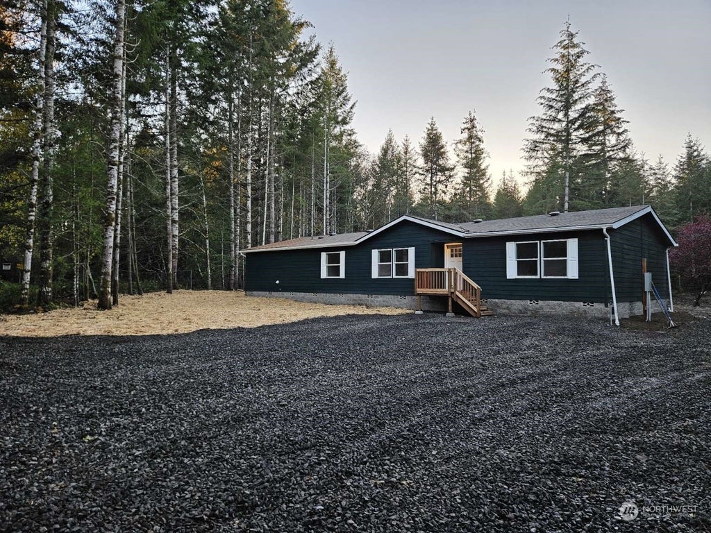 For sale: Stunning 2008 Liberty Anniversary model manufactured home, 30’x70’, permanently installed on a full concrete slab with block skirting on a spacious 1.53-acre lot near Trails End Lake. This completely remodeled 4-bedroom, 2-bathroom home boasts an open-concept layout with high ceilings, offering a bright and airy living space. The home includes new luxury vinyl plank (LVP) flooring, craftsman doors, modern Shaker-style cabinets, and beautiful quartz countertops throughout. Enjoy cooking in the stylish kitchen featuring Frigidaire Gallery stainless steel appliances and LED lighting. The home’s layout provides the potential to create a second primary suite. Located near Trails End Lake.