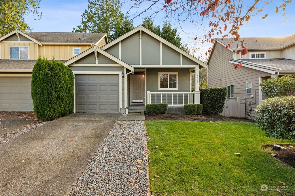 Conveniently located Lacey townhome. These smaller units rarely come on the market. 888 square feet with 2 bedrooms, 1.75 bath and a 1 car garage. You will enjoy the welcoming front porch. Large light bright kitchen with breakfast bar. Aristokraft maple cabinets with crown molding, newer range, refrigerator and dishwasher. New paint & carpet, this home is move-in ready! The slider off the dining area leads to a fully fenced low maintenace back yard. Low HOA dues at $67/month maintains the front yard and adjacent neighborhood common space. Walking Distance to the Popular Chehalis Trail, Schools, Parks, Starbucks & Quick Access to JBLM & I-5!