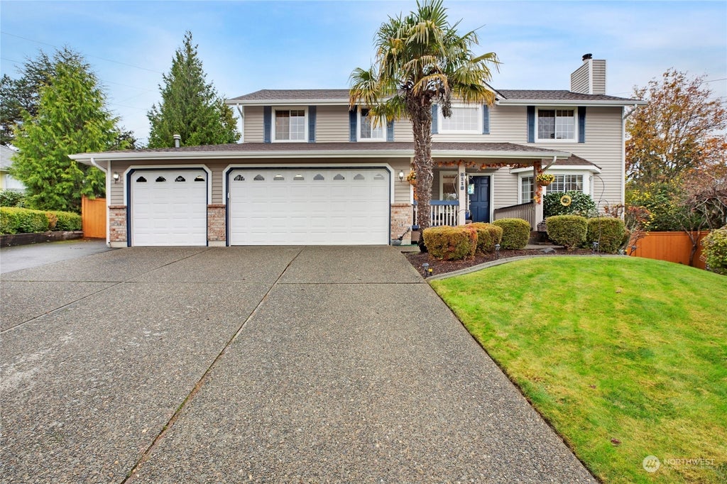 This well-maintained 2,880 sqft home offers four spacious bedrooms and 2.5 bathrooms, situated in a quiet cul-de-sac for a peaceful, private setting. The versatile layout includes a family room, formal living room, and large bedrooms, providing ample space for both relaxation and entertaining. The mature backyard offers a serene outdoor space, while the 50-year roof and air conditioning ensure long-term comfort. The oversized, heated three-car garage and additional detached shed offer excellent storage, the property also features xtra parking. Conveniently located near major highways, shopping, entertainment, schools, and Emerald Downs. This home combines comfort, functionality, and location to make the perfect choice for your next home.