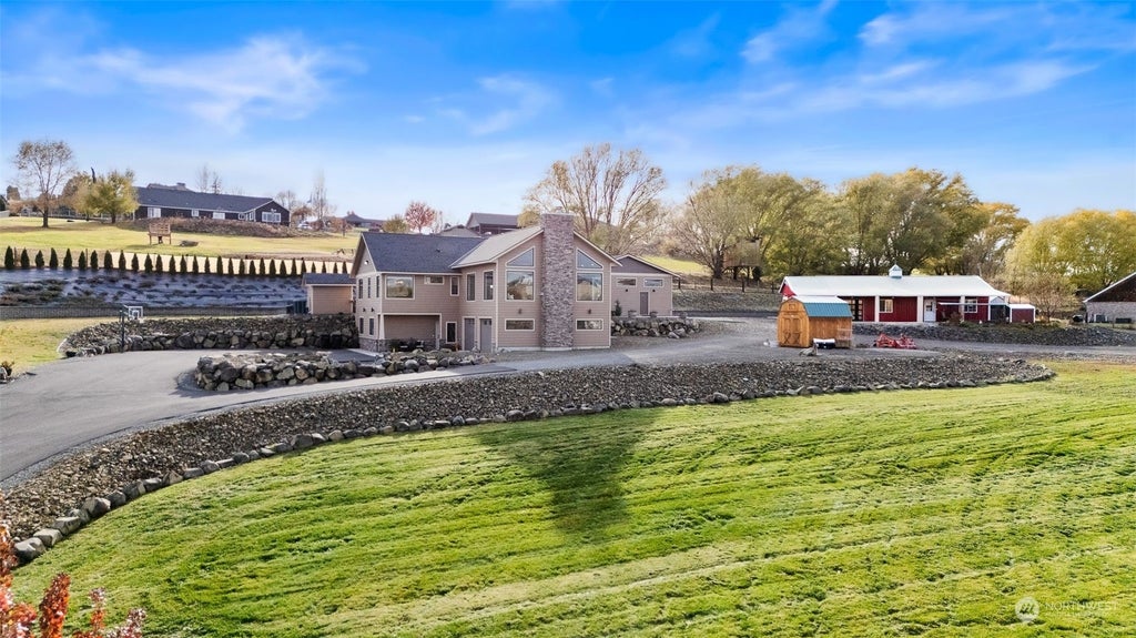 Discover luxury living in this exquisite smart home on just under 4 acres. The heart of this residence features a chef's kitchen that flows into an expansive entertaining area, perfect for hosting gatherings. The convenience of a primary suite on the main level as well as an office. Venture downstairs to find additional living space, including two well-appointed bedrooms, ensuring comfort for guests. A separate 1500sqft guest house offers breathtaking views, creating an inviting retreat for visitors. The property includes a gated driveway, an in-ground pool, and a stunning outdoor kitchen/fireplace, making it ideal for entertaining. This home has it all, combining luxury, comfort, and modern amenities in a picturesque setting.