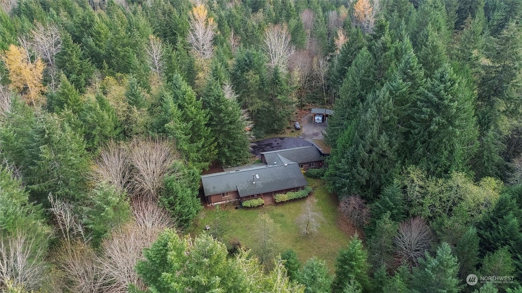 Beyond the gated entry & down a serene driveway, this custom-built, single-story log home rests on 10 gorgeous wooded acres. Enter through the hand carved door into this inviting cabin with soaring ceilings, rich wood finishes & an open layout showcased by large picture windows and skylights. A cozy freestanding wood-burning stove warms the space, complemented by authentic hardwood floors, radiant heat, central vacuum & hand painted sinks. The kitchen boasts custom cabinetry, while the primary bedroom offers an ensuite bath & private porch access. Outside, a two car garage with a workshop & RV carport adds convenience. Formerly two tax parcels, the property includes an additional well and benefits from affordable forestry tax status.