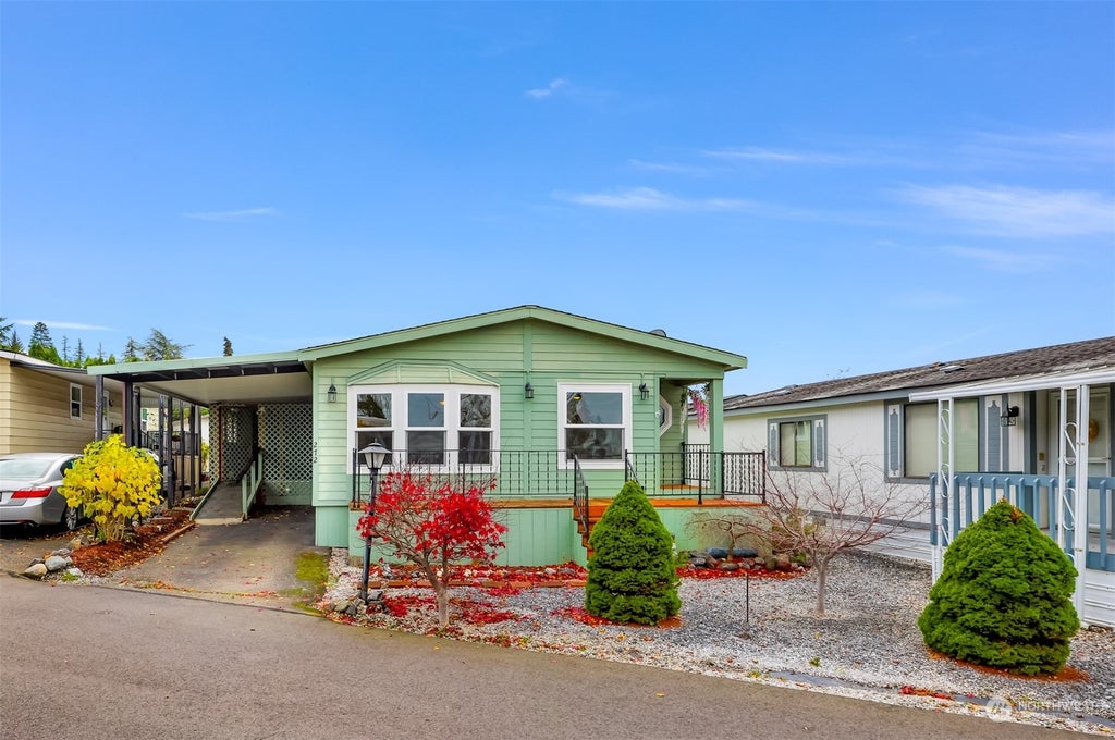 Lower Price! Welcome to Lakeway Estates, one of Bellingham's Adult communities! This charming home is well-maintained with a nice flow that includes a large bright living room with pine paneling, big kitchen & dining, 2 great sized bedrooms, 1.75 bathrooms (bidet in 1 bathroom) & energy efficient windows. Relax on the front deck or the covered & private side deck. Included is an insulated shed to store your treasures. This property has low maintenance beautiful landscaping with an Italian fig tree & a tiny yard so it is easy to care for. Club House offers laundry room, library, billiard room, kitchen, salon, community clubs & activities. Walking distance to shopping, groceries, bank, restaurants, coffee & public transportation.