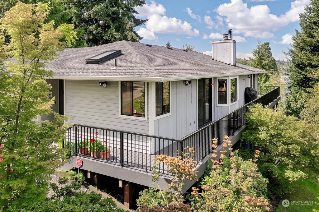 Welcome to your 5-bedroom, 3 bathroom home in Puyallup's DeCoursey Park area. Wrap-around deck has gorgeous valley views. Open dining & living room have fireplace & sidebar. Lots of storage in the eat-in kitchen. Primary bedroom is on the main level, has a walk-in closet w/built-in storage and deck access. The office is an unexpected gem, built-in bookshelves, and desks. Downstairs is a lg laundry w/sink, storage, and folding area. A large rec room with sliders to the yard and a wood-burning stove, 4 bedrooms and bathroom can also be found downstairs. The neat backyard has mature plants and beautiful flower beds. Quiet cul-de-sac close to parks, schools, and Hwy's. Most flooring, carpet, and paint throughout are newer. Beautiful property!