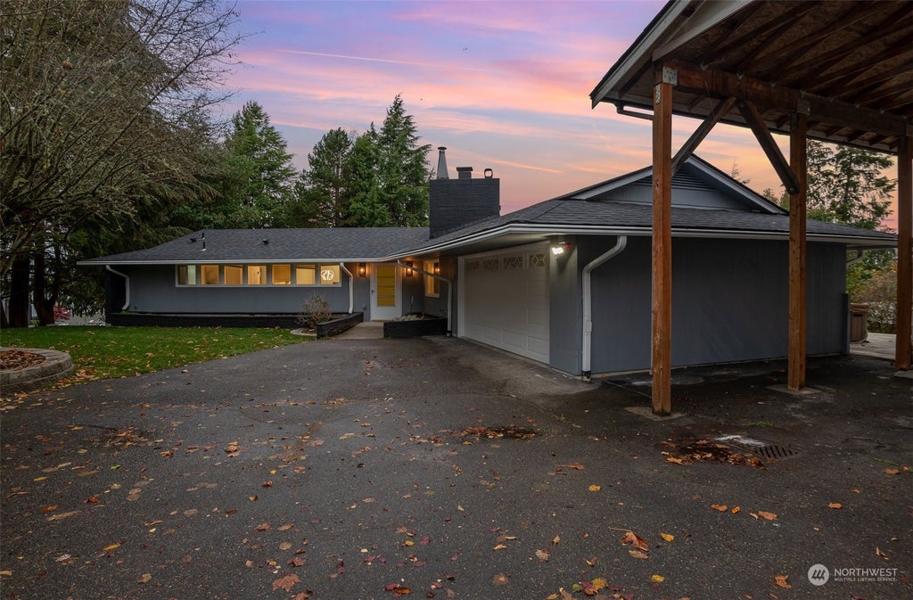 Stunning renovated mid-century modern home w/views of Sound, & Olympic Mtns. Open concept designed living space has a layout flooded w/natural light from the expansive windows framing the sound views. Main level features a spacious living area, refinished hardwoods, custom kitchen w/stainless steel appliances, quartz island waterfall w/eating bar, & stylish modern cabinets. Spacious primary suite with modern bath featuring led lighting, double floating vanity, and custom tile shower. Water views from each room on main floor. Bonus den in lower level. Downstairs has complete living space w/ separate entrance or from the main level. A large private deck provides the perfect place to enjoy the view.