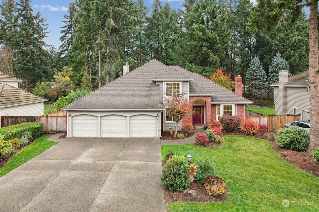 Sought-after Gem Heights neighborhood, this elegant home is set on a large private, wooded lot. Step inside to an inviting 2-story grand foyer that leads to the formal living & dining areas. The kitchen features SS steel appl, island with gas cook top, all seamlessly connected to the cozy family room with fireplace. An additional bonus room/potential 4th bedroom & den/office. Upstairs you’ll find 3 bedrooms & 2 baths. Primary suite has 5-piece bath & WIC. Boasts an oversized 3 car garage. The back offers a patio & hot tub, all within a fully fenced yard. With fresh paint & thorough, pre-inspection already completed. Mins from shops & dining. Enjoy access to neighborhood clubhouse, pool & tennis/pickleball/basketball. Great Puyallup Schools!