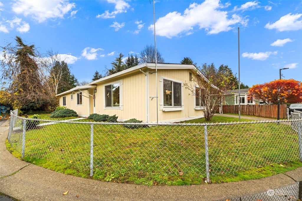 Discover this charming 3-bed 2-bath, 1,344-sqft double-wide mobile home on a fully fenced and gated corner lot. It offers the perfect blend of space and privacy. Featuring a spacious living room flowing into a bright kitchen and dining area—filled with natural light from large windows, vaulted ceilings, and skylights. Ideal for gatherings and everyday living. The primary suite includes a private bath for your retreat, while two additional bedrooms provide flexibility. Outside, the large corner lot offers ample room for gardening, play, or relaxation. Conveniently located near schools, shopping, and commuter routes, this home is perfect for anyone seeking comfort and practicality in the Don Wan Estates community. No age restrictions.