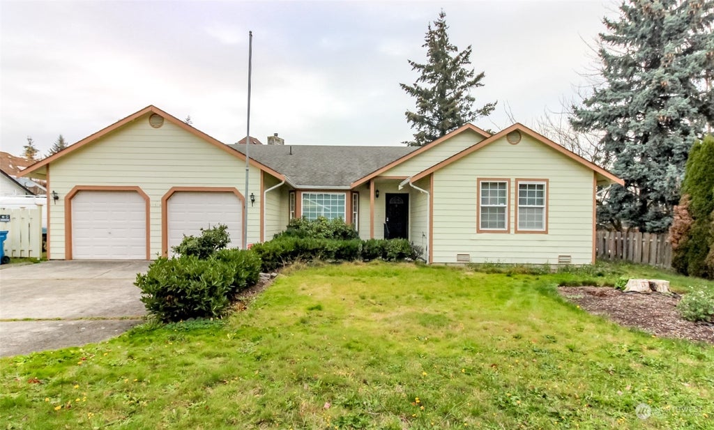 Desirable one level home nestled at the end of a quiet street. Step into a living room with vaulted ceilings and a nice big bay window. Open kitchen for great for entertaining. Open to the family room with a gas fireplace for the chilly winter evenings. Easy access to the formal dining room for formal dinners. Step out onto a covered deck with a hot tub. Perfect for outdoor cooking and just relaxing. Large primary bedroom with double closets. Primary bathroom has double sinks & step in shower surround. Second and third bedrooms are good sized. Room for office or guest rooms. Extra large garage and shed on the side yard. Come with a vision! Close to schools, churches, shopping, parks, trails, freeways and so much more.