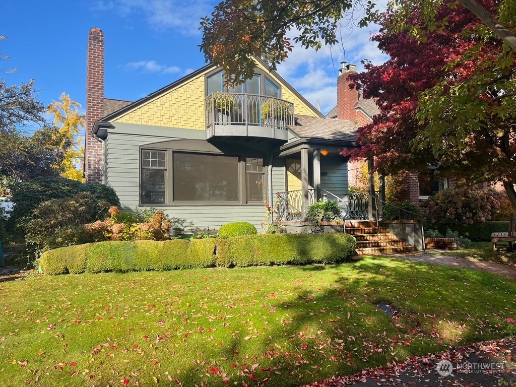 This stunning Craftsman is set on a quiet parkway directly across from Green Lake. A legal duplex offering single family w/without ADU, or multigenerational option. Bright and open Main home is a beautiful 4bd 2ba modern Craftsman design w/ newly remodeled Kitchen and Bath, Batchelder fireplace, AC&Gas furnace, original hardwoods & penny tile, new flooring upstairs. Lake and Park views! Soundproofed lower ADU 2bd/1ba, study, fireplace, heated tile floors, full kitchen w/custom cabinetry, and designer touches incl. vintage columns & stained glass windows. Step out to a tranquil garden and patio w/water features, gas fire pit, landscaping designed by award winning garden architect. Detached storage building and designated parking in alley.