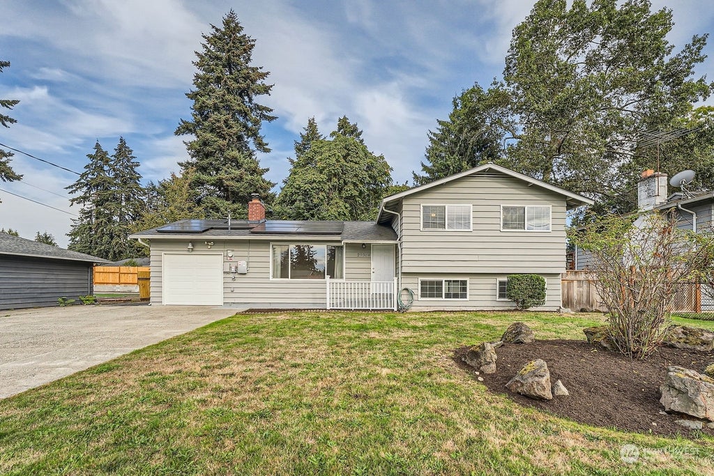 SS Pending Failed BOM New Price $525K. Refreshed Updates Move-in ready! Home features 3 bdrms on the upper level & total of 1.5 bths. Updated kitchen features granite tile countertops, cabinets & pantry. Lower level has a huge family/rec. rm, utility rm & 1/2 bth. Inside, enjoy hardwood floors in Living rm & upstairs hall and bdrms. Cozy up by the frplc on cold days. All interior is freshly painted. New carpet downstairs, the fully fenced backyard offers a concrete patio, Large Shed, refreshed front & back yards w/new mulch bedding areas. Newer roof w/solar panels. SELLER PRE-HOME INSPECTION COMPLETED - Seller made several improvements! One car garage, 8030sqft lot. Near bus lines, Light Rail, schools, shopping and easy access to freeways.