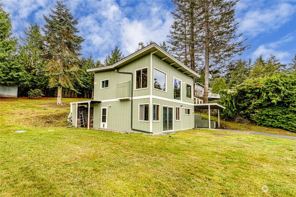 Spectacular panoramic water views of the Strait of Juan de Fuca, Protection Island & Mount Baker at unbelievable affordability! 2-bd, 2-ba home on quiet cul-de-sac has a main floor open layout w/ sweeping views from new 2024 large picture window & sliding glass doors. This property offers possibilities not only as a home but as a 2-unit rental or MIL apt downstairs. 2024 renovated deck & railings faces stunning waterfront views. 2024 upgrades include: new roof, wall heaters, electrical panel, exterior paint, water heater & more. Original flooring removed (no pets!) and a $10k flooring credit at closing. Tall trees rim the backyard with buffered privacy. Beach access & boat ramp nearby. Septic System inspected. Taxes $2289 annually.