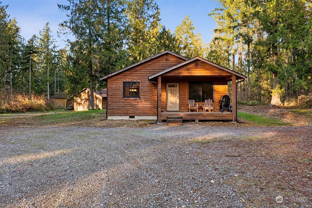 This adorable cabin in the Spanaway community on 1.2 acres, is a perfect blend of comfort & charm! The 1,064 sq ft home ft. a bright & inviting living area W/plush carpet, & dining space accented by laminate hardwood floors. Chef's kitchen is a highlight, W/wood cabinets, SS appliances, & convenient barstool seating area for casual dining. Primary bedroom complete W/a full bath, while two additional bedrooms share another full guest bath. Outside, you'll find a spacious 24x36 sq ft shop W/a roof that was installed in 2022—perfect for hobbies, storage, or a workshop. The home's roof installed in 2013. The property offers ample space for RV parking & offers RV hookups, making it a great choice for those W/an adventurous spirit.