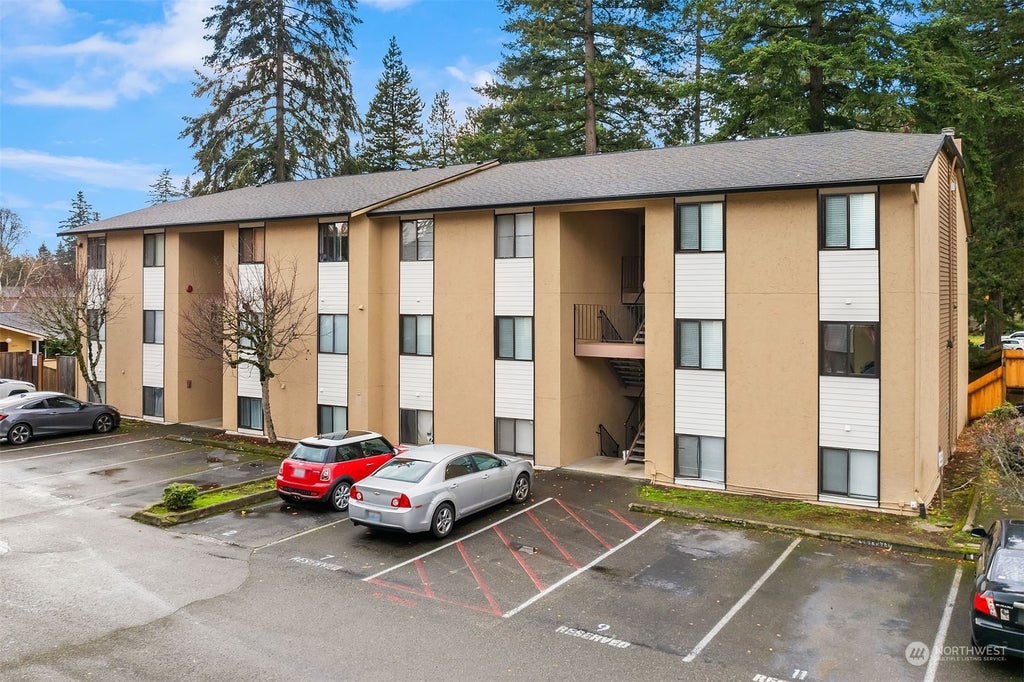 {{Discover the perfect blend of comfort and convenience}} 2-bedroom top-floor condo. The inviting living room featuring a charming wood-burning fireplace welcomes you, w/ direct access to the private covered balcony complete w/ extra storage it’s the perfect spot to start your day w/ a cup of coffee. While the modern kitchen boasts newer cabinets, quartz countertops, pantry, & separate dining area for easy entertaining. The primary bedroom inclds a walk-in closet & direct bathroom access, and the in-unit washer and dryer add everyday practicality. Assigned parking space, add'l on complex storage, & conveniently located near Microsoft + Crossroads, this home is ideal for buyers or investors seeking a well-maintained home in a prime location!