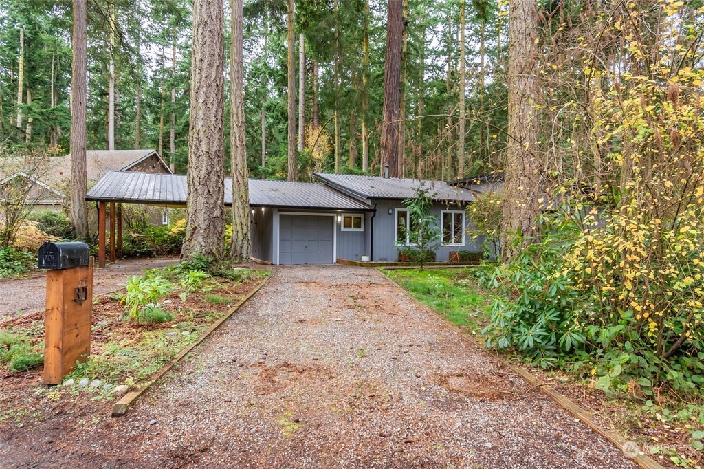 You will love the privacy of this contemporary home on a cul-de-sac lot in charming Coupeville, surrounded by beautiful fir trees on .34 acres. In 2020, this home was remodeled with new interior painting, flooring, cabinets throughout along with stainless steel appliances and more. Vaulted ceilings, custom windows, French doors, mid split heating/air and cozy woodstove. Primary suite is vaulted and includes a full bath and walk in closet. This continues to a guest bedroom and full bath. 1 car garage with areas of storage and a large carport. Paths and garden spaces for your outdoor enjoyment and patio for gathering friends. This is the perfect home for a lifetime of memories!