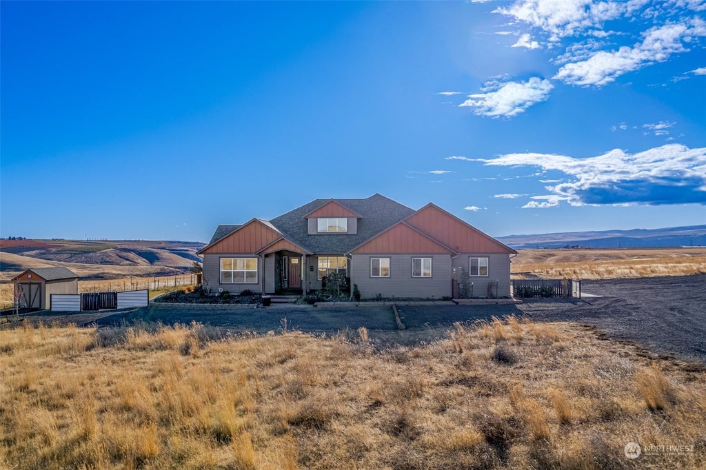 Incredible home built on 45+acres with an unobstructed view of the Columbia River and mountains to the west. This open floor plan features a beautiful kitchen with a double oven and gas range, granite featured throughout the kitchen. Oversized granite topped kitchen Island adds to the functionality of this food preparation area. This home has a primary bedroom with attached bathroom that includes a soaking tub and walk in shower. Two additional bedrooms, an office with an 18 foot ceiling. A bonus room adds for a quiet location to enjoy your favorite book. 2.5 bathrooms. This home has abundant windows to take in the wonderful views. A large attached 3 car garage with soft water system. 24X36 shop, insulated with heat.