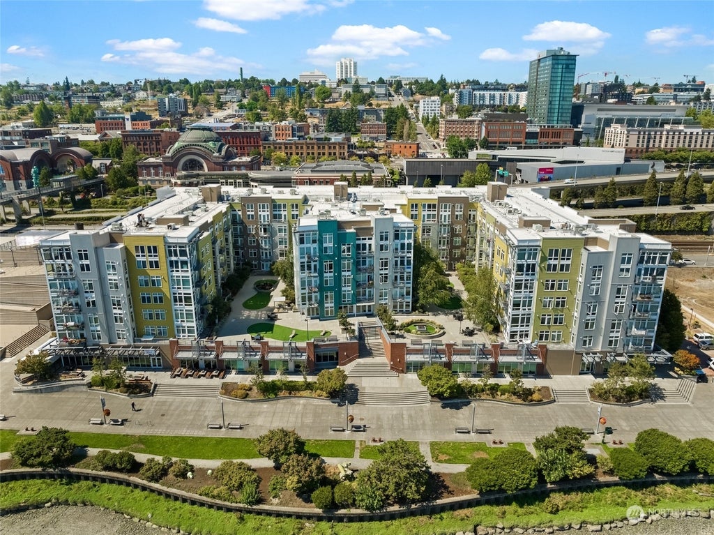 Escape to downtown living in this urban, chic loft-style penthouse at Thea's Landing w/ 2 parking spaces. Walls of windows showcase views of the city. Open-concept living features stylish hardwood floors, high ceilings & natural light with gourmet kitchen, living & dining w/balcony & ¾ bath. Upstairs owner's suite is a relaxing oasis. Building amenities include a state-of-the-art gym, sauna, clubhouse, BBQ & firepits. The secured entry, mail & parking for convenience & security. Walk the Chihuly Bridge of Glass to the Museum District, tour galleries & catch performances of Broadway shows. With trendy shops, coffee houses, diverse eateries, and nightlife nearby, embrace the vibrancy of this city-living! *Seller Bonus: 3 Paid months HOA*