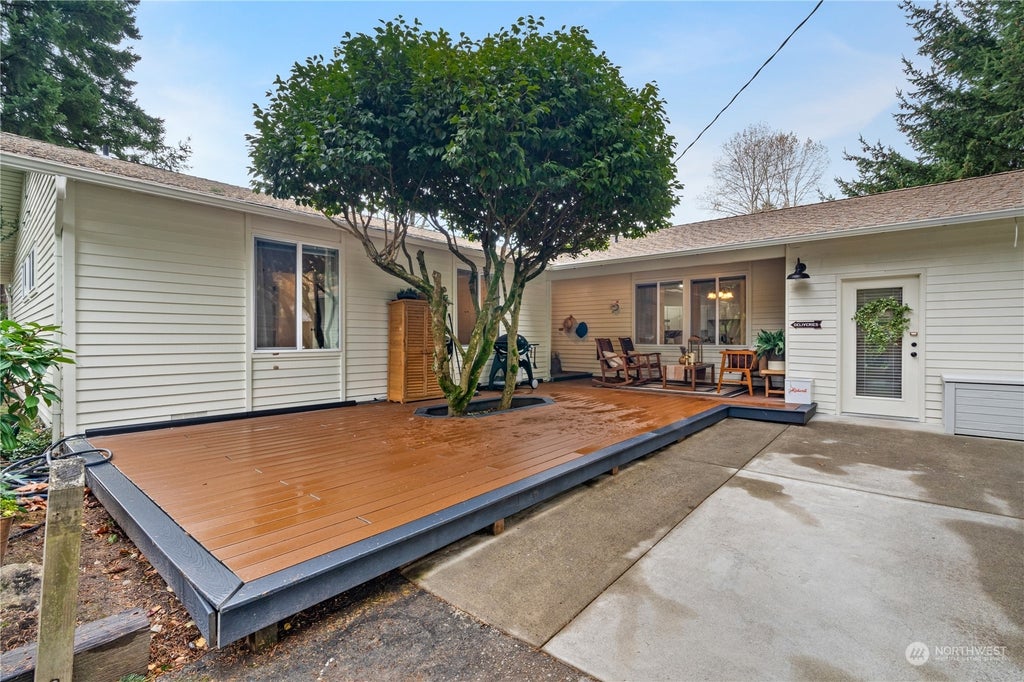 Built in 1972, this single-story rambler boasts a 4 bed, 2.75 bath layout sitting on a .44 acre of evergreens and features a recently remodeled 1 bed, 1 bath mother-in-law suite w/ private side covered patio area perfect for guests. Aside from the suite, the main home features original charm w/ hardwood floors, hydronic heat w/ multiple fireplaces, and vaulted ceilings while providing new upgrades including the coffee bar, laundry room, bathrooms and kitchen w/ contemporary cabinetry, countertops, and stainless steel appliances. The exterior of the home provides mature landscaping, front deck, covered back patio area w/ fully fenced back yard, greenhouse, spacious utility shed and covered RV parking/storage.