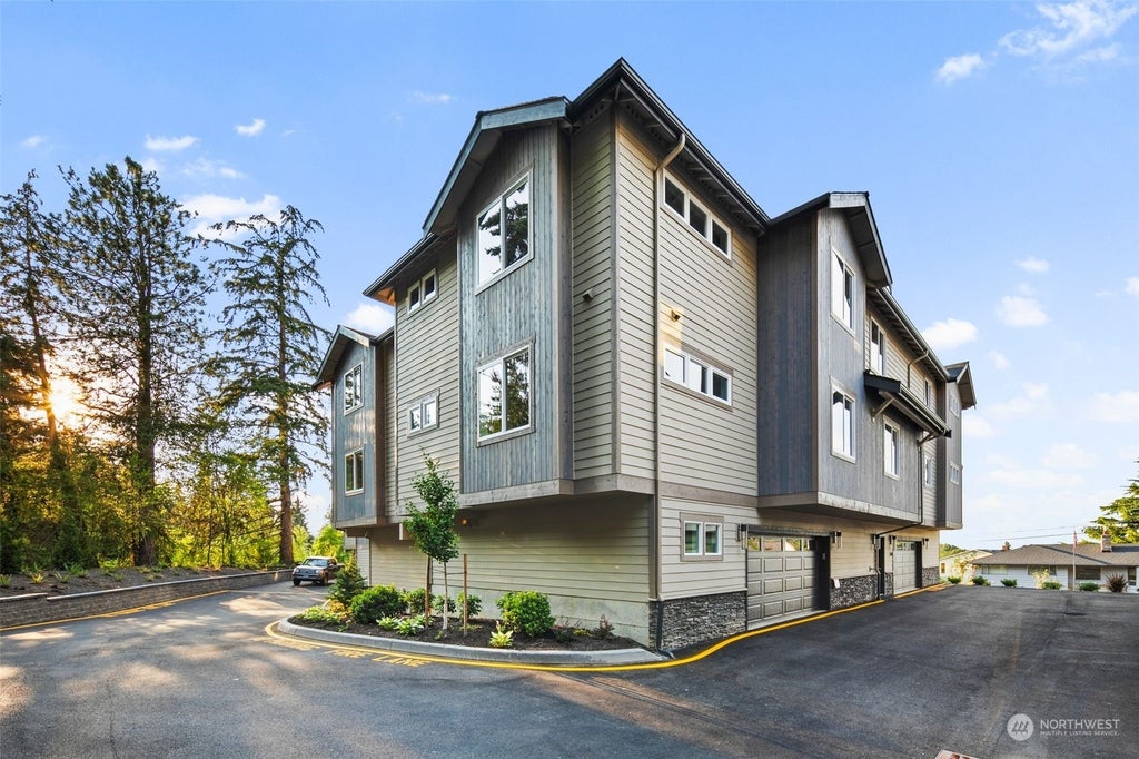 Experience luxury living in this rare new-construction Edmonds condo, boasting views of Puget Sound, Whidbey, & Mt. Baker. Direct elevator access to unit & private 2-car garage. Open-plan design flooded w/ natural light from oversized windows. Chef-style kitchen, complete w/ spacious island, GE Profile SS appliances, white shaker cabinetry, & pantry. Floor-to-ceiling stacked travertine gas fireplace adds sophistication to living area. Yr-round comfort w/ heat pump mini-splits in the main living area & Primary Suite. Covered view balcony offers seamless indoor-outdoor entertaining. Featuring 3 generous bed, the Primary Suite includes a spa-like bath w/ heated floors & sleek wet room. Only 5 units at coveted Paradise Heights are left!