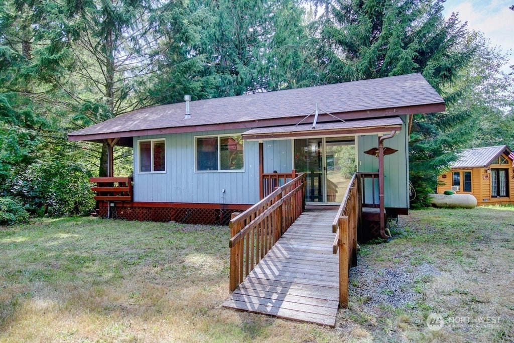 Located near Baker Lake and Snow Park, this property boasts tasteful updates and finishes. They include new interior paint (including cabinets), cabinet hardware, switches, receptacles, and cover plates, vinyl plank flooring, baseboards, propane fireplace in add-a-room, kitchen sink and faucet. The furnace and hot water heater have been recently serviced, and a new Nest thermostat has been installed. The covered deck faces the greenspace and creek below. The updated lot next door is also available! Lake Tyee is zoned recreational for 240 days of use/yr w/ gated access, off leash fenced small & large dog areas, playgrounds, lake access, sports courts, pool and hot tub, clubhouse, comfort stations w/ showers, and trails to explore.