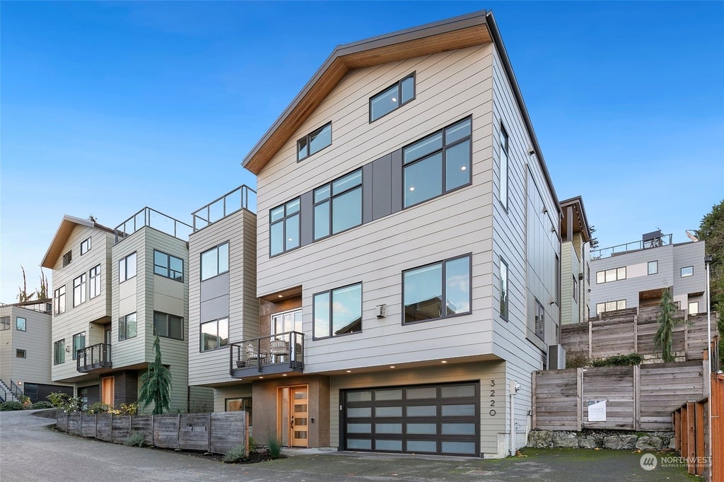 Nestled within the gated Westbridge community of West Seattle, this 5 bed/4 bath stunning, contemporary home offers an exceptional living experience. Every corner of this residence exudes modern elegance. The chef's kitchen is equipped w/ high-end Bertazzoni appliances, oversized quartz island with waterfall edge island looking into the great room w/ the fireplace as the focal point. Enjoy panoramic east-facing city & mountain views from the rooftop deck & throughout the home. The deck is plumbed for a gas BBQ, ideal for outdoor entertaining. A bonus room w/ a wet bar adds versatility for gatherings or relaxation. 2 Car garage + additional guest spot. Westbridge is a prime location near restaurants, WS Bridge, Alaska Junction & Alki Beach.