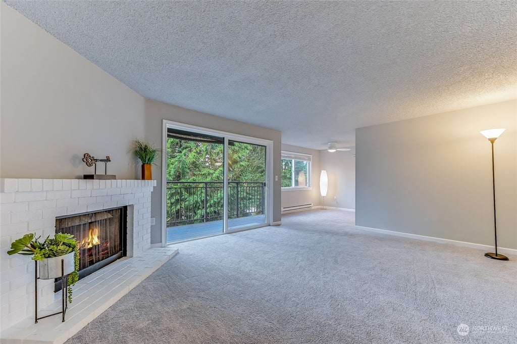 Discover this beautifully updated condo in the heart of Totem Lake! This stylish home features modern upgrades, including a sleek kitchen with granite countertops, solid wood cabinets, and all appliances stays. The open floor plan offers a separate dining area with a cooling fan, luxury vinyl flooring, and contemporary paint. The remodeled bathroom showcases dual vanities, a tiled bathtub, and quality finishes. The private balcony with storage and serene views. The building underwent a full exterior renovation in 2021, with new siding, windows, and roof. Located near I-405, shopping, and dining, this property offers ample parking, no rental cap, and a fully paid 60k special assessment, making it perfect as an investment or forever home