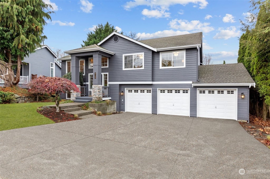 Ridgewood at Lakeland Hills. This newly remodeled 4 bedroom/ 3 Full Baths offers it all. When entering the home, the stairs lead into a lrg living rm space w/gas fireplace & picture window w/ partial views. The updated kitchen has new quartz countertops, SS appliance package, newly painted cabinets and hardware, ceramic tile floors leading to the breakfast nook to the lrg new deck w/ beautiful views & sunsets. Formal dining m w/lrg picture window. The expansive primary suite has vaulted ceilings that leads into newly updated bath w/walk in shower & tub, walk in closet. The 2 bedrooms upstairs are generous in size as well. Basement has lrg bed & full bath/fam rm/laundry/3 car garage- 50K in updates. This won't last long