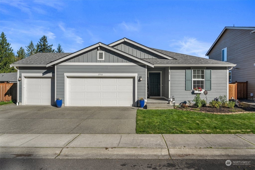 Stunning 4-bedroom rambler on a great corner lot in the highly desirable Falling Waters community! Built by KB Homes, this home offers an open-concept floor plan with modern finishes throughout. The gourmet kitchen is a chef’s dream, featuring SS appliances, a gas range, quartz countertops, a spacious island, subway tile backsplash, and pantry. The living and dining areas flow seamlessly, creating an ideal space for entertaining & everyday living. Primary suite has spacious bathroom and walk-in closet. Yard has Smart Sprinkler system. 3-car garage has a entertaining bar and a drive thru door to the backyard. Enjoy the convenience of being close to parks, schools, and shopping. This move-in-ready home has it all—don’t miss your chance!