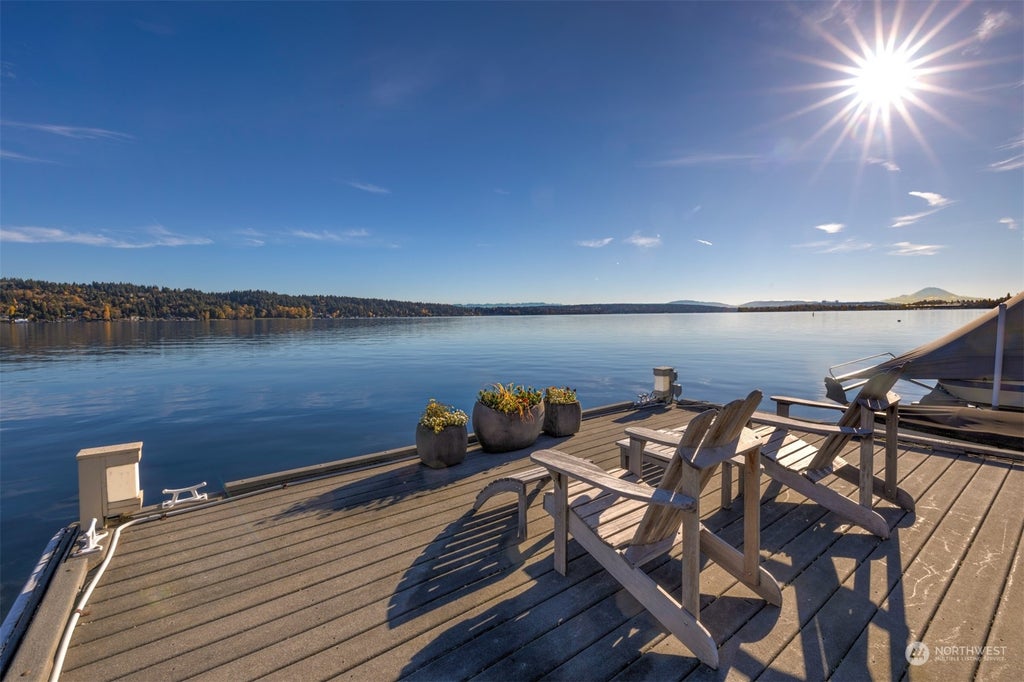 Live on Lake Washington! On a quiet street just a short drive from downtown is this stunning waterfront residence. Listen to the waves & watch sunrises, moonrises, wildlife, seaplanes, and water activity from your own 35’ of waterfront with dock, boat lift, boathouse, & low-bank pebble beach to launch from. Gorgeous home with incredible views! Complete with spacious chef’s kitchen with Viking gas range, 2nd floor lux primary suite featuring jetted bath, heated floors, dream closet & view deck, + office, lower floor living area & more. Over $100k in recent improvements including new furnace, heat pump, hot water heater, windows, fireplace inserts, exterior paint, & W/D. Location! Minutes to UW; Burke Gilman Trail right outside. Preinspected.