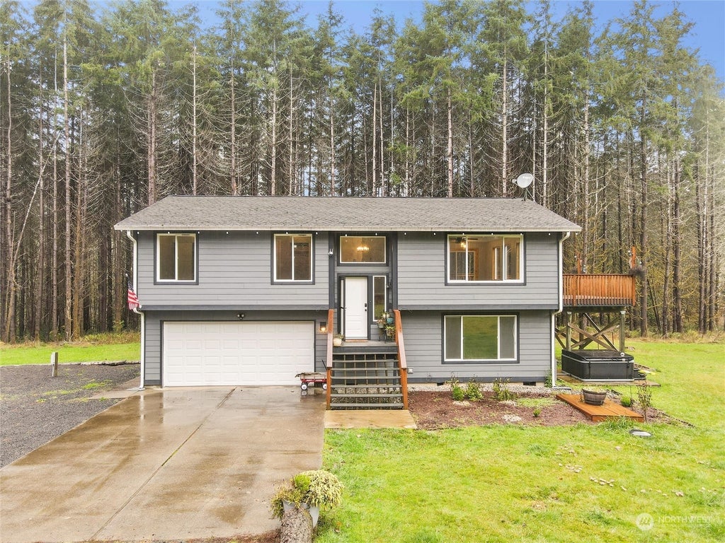 Welcome to your private retreat nestled on nearly 5 acres. Lot is level with plenty of room for all your ideas! The 3 bdr, 2.5 bth home is recently renovated w/ new floor coverings, paint, kitchen makeover w/ new cabinets and countertops & more. Breakfast bar makes for easy meals. Great nature views from the spacious living room. Primary bdr has an ensuite bth. The expansive newer deck is perfect for entertaining or soaking in the tranquility. Surrounded by evergreens & fruit trees, the beautifully landscaped yard provides room for gardening, recreation, or watching the wildlife. Explore nearby Hood Canal & hiking trails. This home combines the tranquility of rural living with easy access to Shelton’s amenities & Olympia.