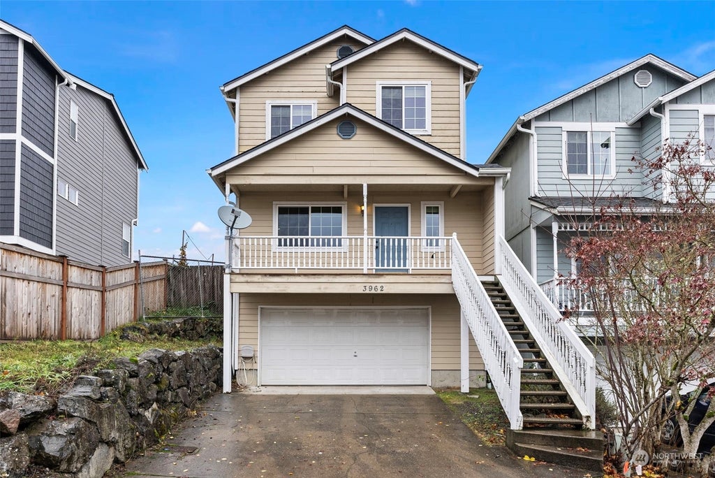 Perfectly located home in the heart of Bremerton! Sitting handsomely on a hill in the very back of the community, this home is both affordable and cute as a button. Spacious covered front porch greets you at the door when you enter the open concept living room, dining room and kitchen. Stainless steel appliances shine in the updated, chic kitchen. 3 bedrooms upstairs, including the Primary suite, with its own attached full bath. 2 additional bedrooms upstairs makes this home functional for you! Small, fenced in backyard for easy maintenance, and a side patio for those Saturday BBQ's. Easily walk or bike to restaurants, bars, shopping, bus station or the Bremerton Shipyard. Seller is offering a $2,000 flooring allowance for your own updates!