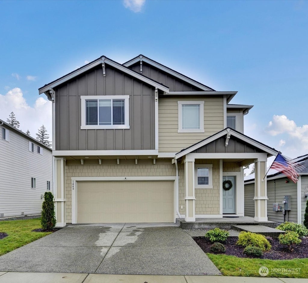 Come view this beautiful & newer 2 story, 4 bdrm home! This property features an open family room with gas fireplace & is located directly off the very spacious kitchen. Included is an expansive island with plenty of room for 6 to dine. There's a walk-in pantry, plenty of counter space & all stainless steel appliances will stay to include the gas range. You can also enjoy meals in the large dining area that overlooks the backyard & covered patio. Upstairs you'll find the owner's suite which has a large walk-in closet & private bath with double sinks. Additionally there's a utility room, 3 more bdrms, a full bath & an open loft area. Stay comfortable in all weather with the heat pump/AC. Fully fenced yard, 2 car garage with an EV charger.