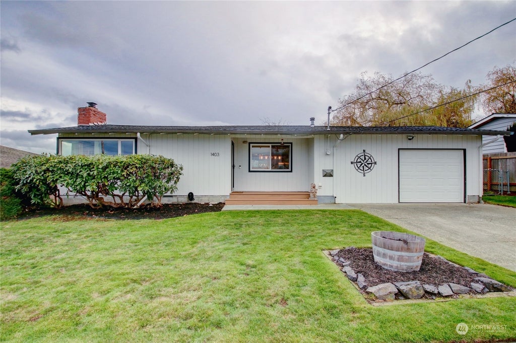 Beautifully updated single-story home with partial views of Padilla Bay and Mount Baker. This home features hardwood floors, a natural gas fireplace in the living room, and a kitchen with gleaming quartz counters, stainless appliances, and a lovely backyard view from the sink window. The spacious primary bedroom includes an en-suite bathroom, while the hallway offers a ¾ bath and two additional bedrooms. A large laundry/mudroom off the kitchen provides access to the fenced backyard, which boasts a spacious patio and two outbuildings. Centrally located with easy access to all that Anacortes has to offer!