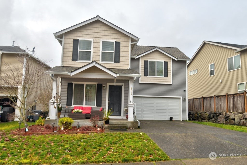 Absolutely beautiful 2334 sq foot home in the highly desirable NW Landing, Dupont, neighborhood. No expense was sparred in updating and caring for this home; a 75-year roof was installed in 2023, luxury vinyl plank flooring covers the downstairs and counter to cabinet tile backsplash. All 3 bedrooms are oversize with one of the guest bedrooms large enough to fit a king size bed with a walk-in closet. The fully fenced back yard is flanked on one side with a boulder, rock, wall and no neighbors to the rear of the property. The two-car garage is set back far enough to allow ample space for parking in the front. The Dupont community is very well maintained and has so much to offer as well as quick access to I-5 and JBLM.