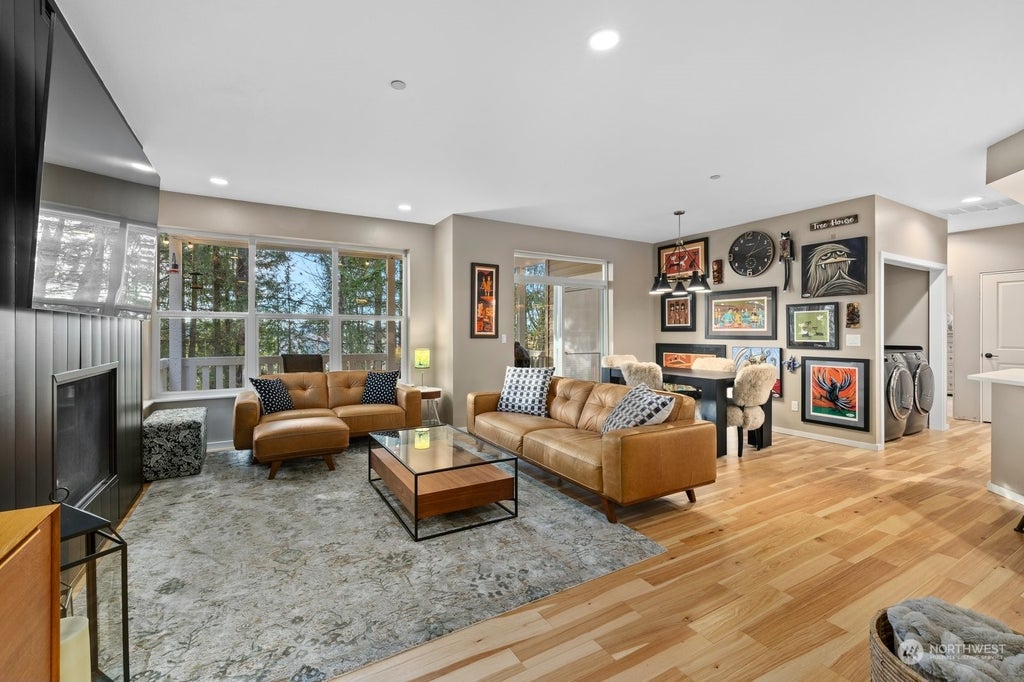 Rare opportunity to own a like-new, ground level, end unit condo with extensive luxury renovations. This pristine two-bedroom with den/office, 1.75 ba and 2-car garage features one-level living and sits quietly surrounded by greenery. Professionally remodeled in 2024 including brand new kitchen w/smart faucet, new flooring/doors/paint/trim throughout, and new high-end gas fireplace and surround. The spacious bedrooms include new closet systems and bright, oversized windows. The primary bedroom features en-suite bath with double vanity and step-in shower. Enjoy tranquility w/ private, covered deck overlooking the forest and trails below. This home provides the feel of new without the new price tag! PreInspected+1-year home warranty included.