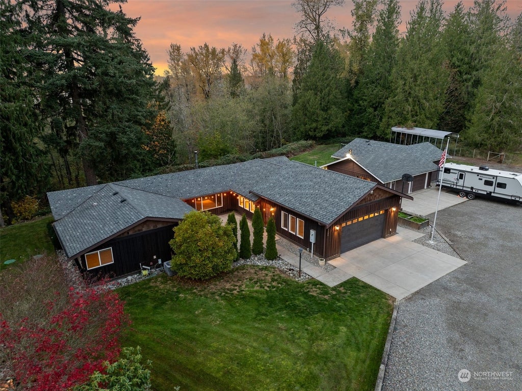 Secluded rambler- 1.7 acres tucked within city limits of Buckley | Large shop | Space w/ heated floors off shop for office, mudroom, recreation, media, or whatever you can imagine | Buildable acreage next door also for sale MLS #2313592 | This property is off the beaten path & has everything | Parking for RV | Large detached garage/shop | Tankless water heaters (2) | Heated floors in primary bathroom, kitchen, & mudroom | Large bedrooms | Sprinkler system | Horse shoe pits | Dog run | Hardwood flooring | Wood stove | Front courtyard layout w/ stamped concrete | Back concrete patio w/ electrical ready for hot tub | Fruit trees and garden space | Connect. to city water | City maint. roads, good during snow/ice | BEST VIEWING IN DAYLIGHT!