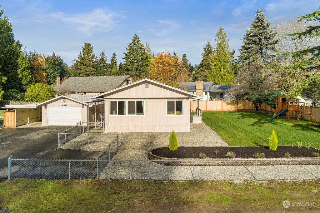This affordable & spacious 2 bedroom/2 bathroom home is located in Central Kitsap on a .28 acre lot. The heat pump provides year around heat or air conditioning, updated landscaping, fully fenced yard, 2 car garage with a large workshop. This home has a updated 3 bedroom septic system, new concrete patio and a covered patio off the back deck. The primary bedroom offers a 3/4 bathroom with a walk in closet. Close to shopping, schools and bases.