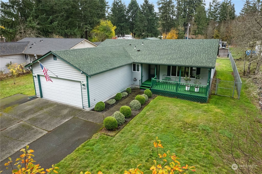 Swing by and see this Charming Rambler on a dead-end street with peek a boo view AND Community Access to Offut Lake! It sports a welcoming front porch to greet guests and a covered patio in the back to enjoy your summer evenings! Also, a large Primary Bedroom and bath, 2 guest BRs, a main hall bath, Vaulted Ceilings, a Nice sized Laundry/mud room, a double attached garage, and all the appliances are included! You also get a big, level, fully fenced backyard. The Heat Pump/AC will keep you cool in the summer and toasty in the winter! Great Location between Oly & Tenino. Bronson Country Beach Club Dues include residential water service and lake access to Offut Lake. Call today for a private showing!