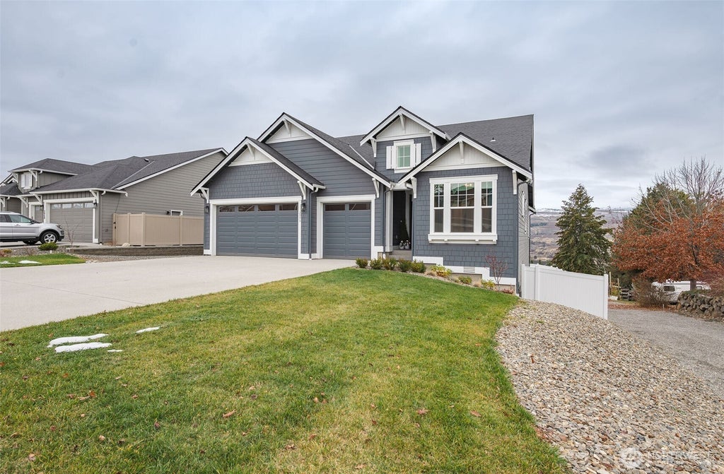 Do NOT miss the opportunity to consider this NEARLY NEW 4 bed/3 bath Craftsman beauty with GORGEOUS views! This home offers privacy, main floor living with lovely flow from kitchen to dining & to your viewing deck for relaxing or al fresco dining! All this & a 3 car garage on a friendly cul de sac w/ great schools and all conveniences nearby. You will love the multiple upgrades including LVP flooring, lighting, fencing, & landscaping. HUGE downstairs rec room perfect for TV/Game Room or a quiet retreat for guests as here you’ll also find another bed & full bath. The generous slider opens to your fenced back yard planted with rare bulbs and plants. Sprinkler system front & back on irrigation. Make a viewing appointment today!