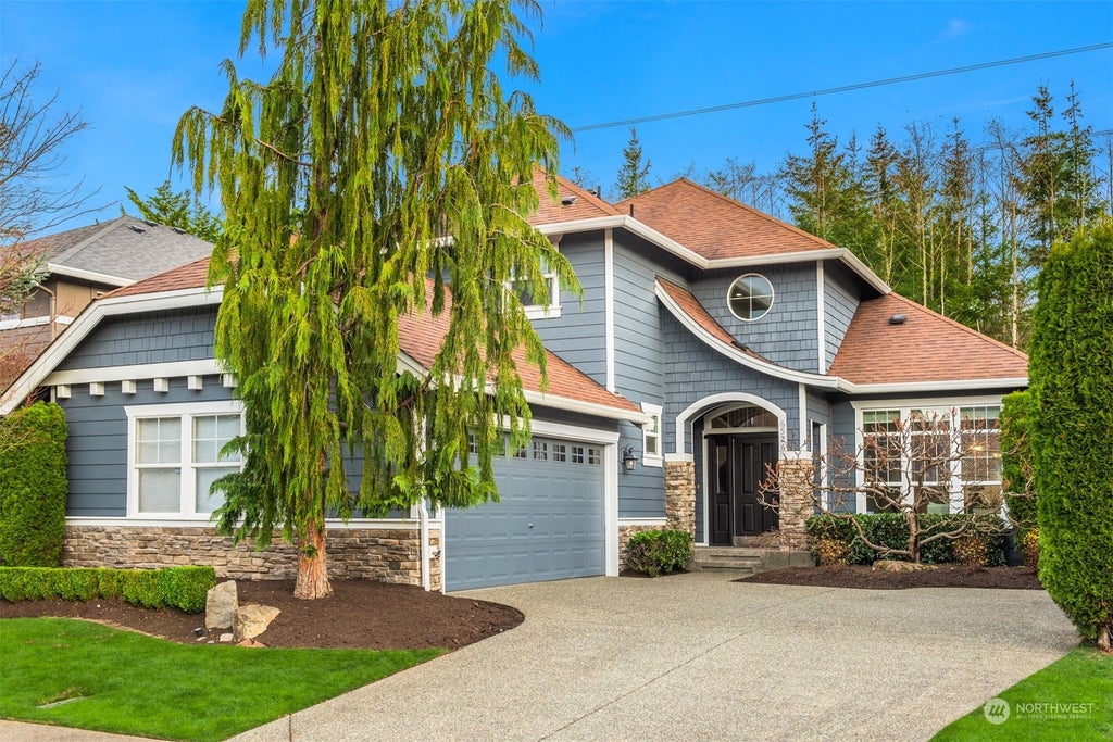 Storybook Snoqualmie Ridge remodel nestled in the coveted Crestview community. Grand entry w/soaring ceilings opens to reveal a sundrenched interior designed for effortless entertaining. Spacious floorplan offers formal living & dining rms, epicurean kitchen, open concept family rm w/breakfast nook, home office, bonus studio & sumptuous primary suite. Extensively remodeled home is loaded w/sophisticated upgrades: wide plank hardwood floors, elegant quartz counters, custom cabinetry, designer fixtures, new furnace & A/C. Idyllic property backs to lush greenbelt for exceptional privacy w/large patio perfect for summer BBQs. Incredible location just steps to community park, mins to schools & world-class golf, w/easy access to shopping/dining.